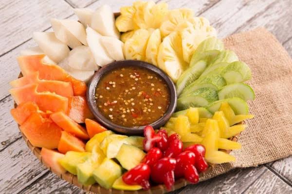 Rujak buah unik karena bumbu kacangnya. Bumbu rujak terbuat dari campuran kacang tanah yang dihaluskan, gula merah, garam, asam jawa, dan cabai. Kombinasi bahan-bahan ini menciptakan rasa pedas, manis, asam, dan gurih yang unik dan menyegarkan. Asam jawa dan cabai memberikan sensasi pedas dan asam yang menyegarkan, sementara gula merah memberikan sentuhan manis alami.